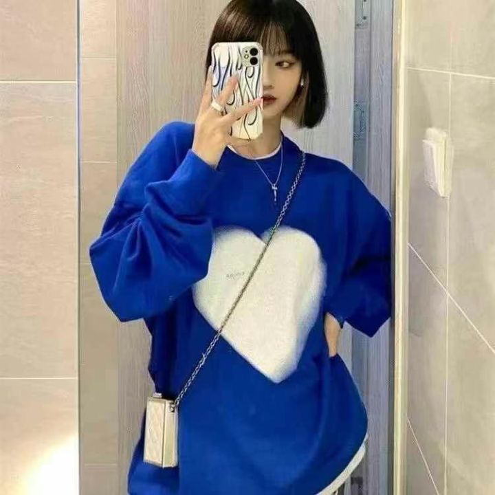 棉质克莱因蓝卫衣444件8.5,面料柔软舒适,爱心印花,后领包边到肩,码数M-...