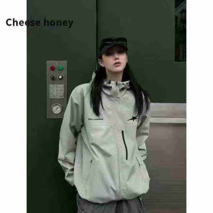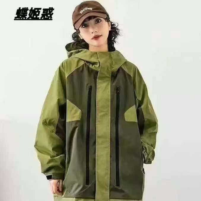 美式字母刺绣新款潮牌山系防风冲锋衣,男女款宽松连帽工装外套,单款两个色...