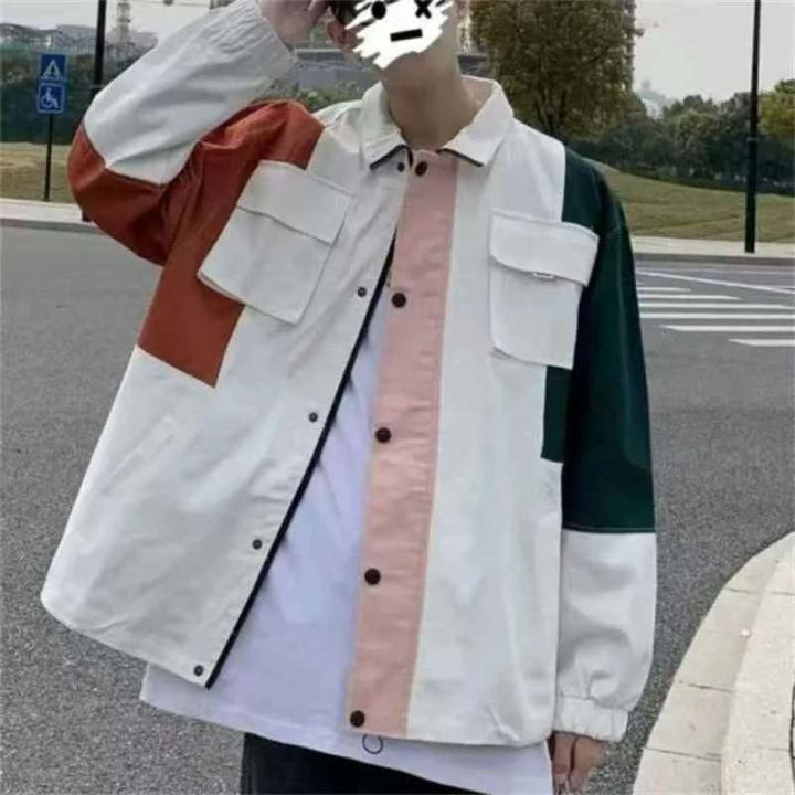 全清12.8,春秋新款水洗棉工装夹克潮流拼接撞色宽松大码休闲夹克...
