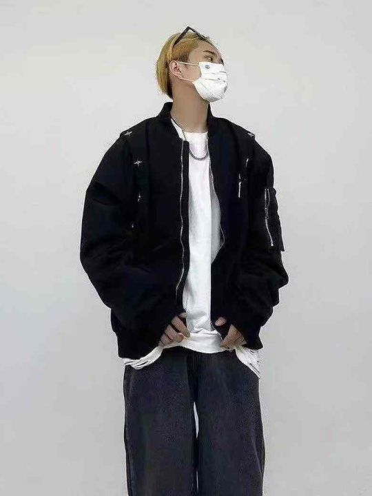 潮牌港风日系原宿工装棒球服男女同款夹克外套单款单色S-2xL独立包装90件全...
