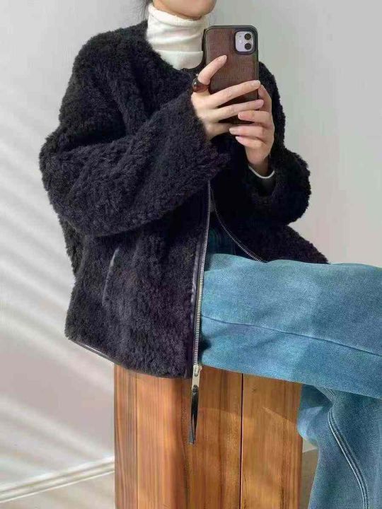 反季清:¥16.8一件高级感黑色圆领老钱风羊羔毛加棉厚外套,450件左右,尺码...