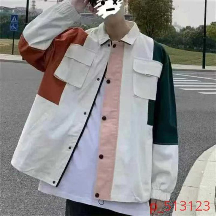 全清12.8,春秋新款水洗棉工装夹克潮流拼接撞色宽松大码休闲夹克外套,码数...