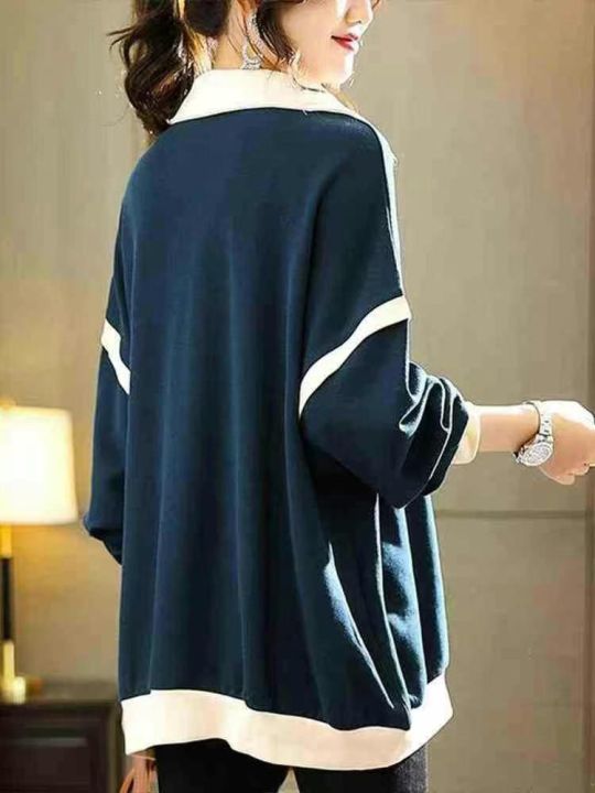 全清8.8元/件253件薄款拼色宽松翻领卫衣,单款两色,独立包装!码数:M-2XL...