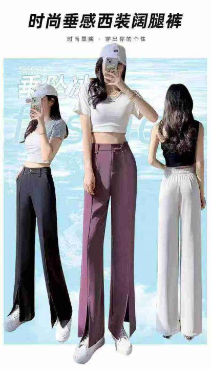 ☕️大码胖mm西裤冰丝垂感微喇裤女夏阔腿拖地显瘦直筒开叉西装裤1348条全清...