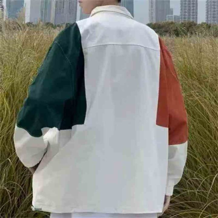 全清12.8,春秋新款水洗棉工装夹克潮流拼接撞色宽松大码休闲夹克...