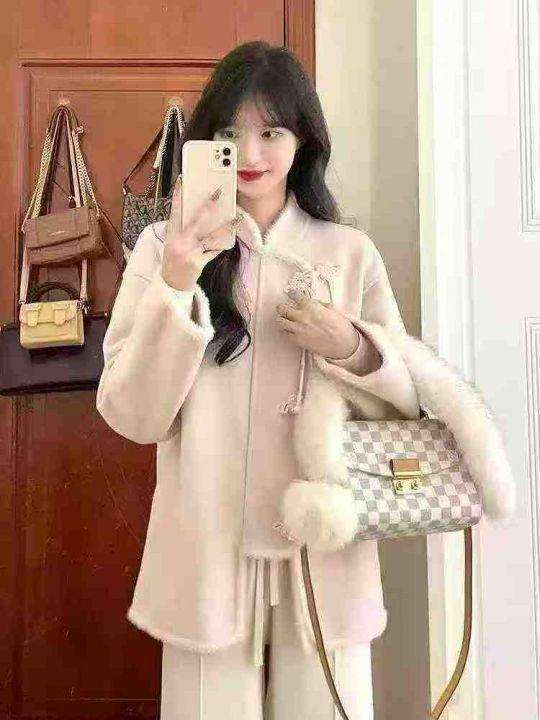 90件2025秋冬新中式粉色双面呢高级感复古短款毛呢外套,码数S—XL,独立包...