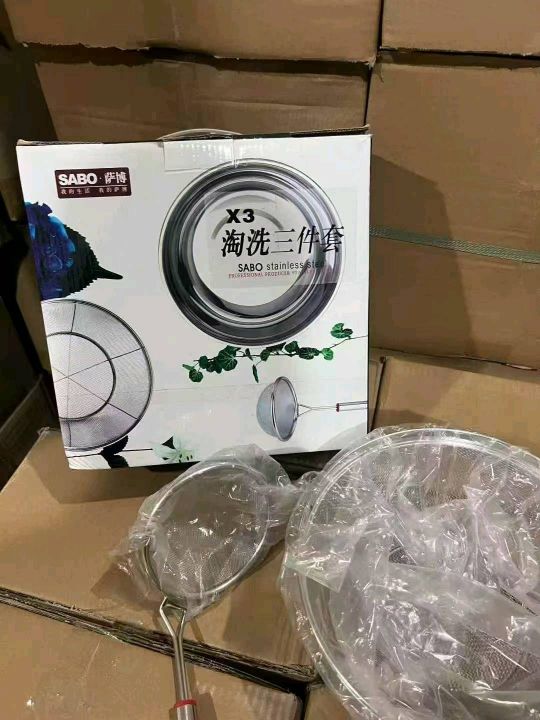 【洗菜洗米】无磁不锈钢沥水三件套家用厨房漏盆洗菜细孔漏水淘米过滤,彩盒...