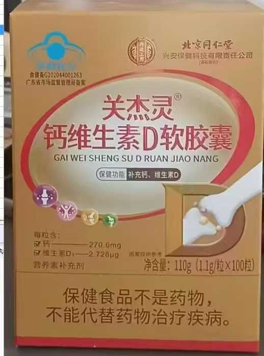 北京同仁堂关杰灵钙维生素D软胶囊1.1g/粒*100粒,5800盒24年10月日期,保2...