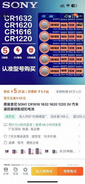 SONY纯原纯进口,CR1620电池,全良品,2029年到期,120000个现货在仓库不零...