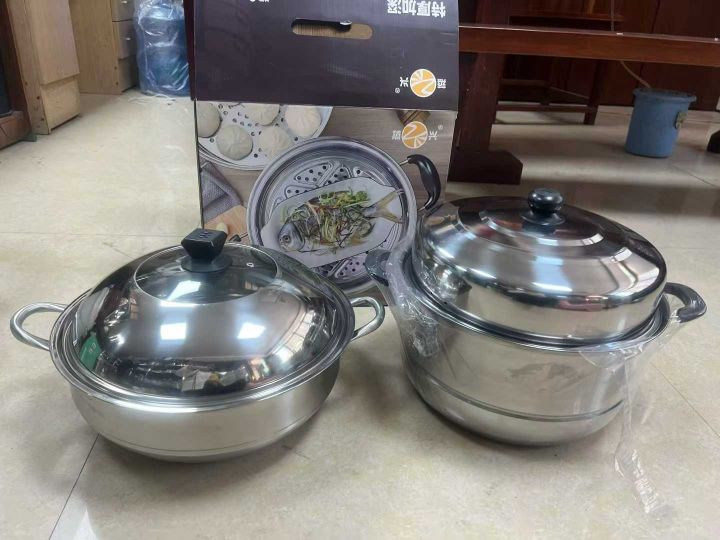 34#.蒸锅,汤锅两件套,150套左右。全清48元一套。