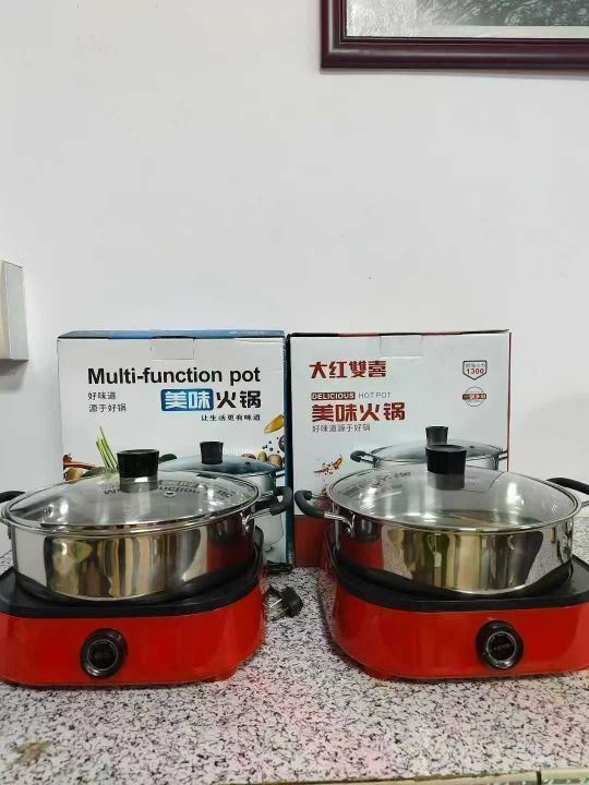 长城 红双喜两大厂牌电煮锅 锅体采用分体式设计 锅身采用不锈钢材质 1300W...