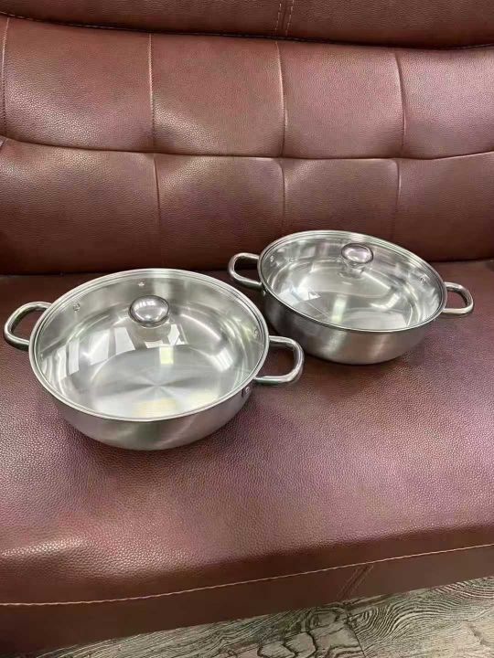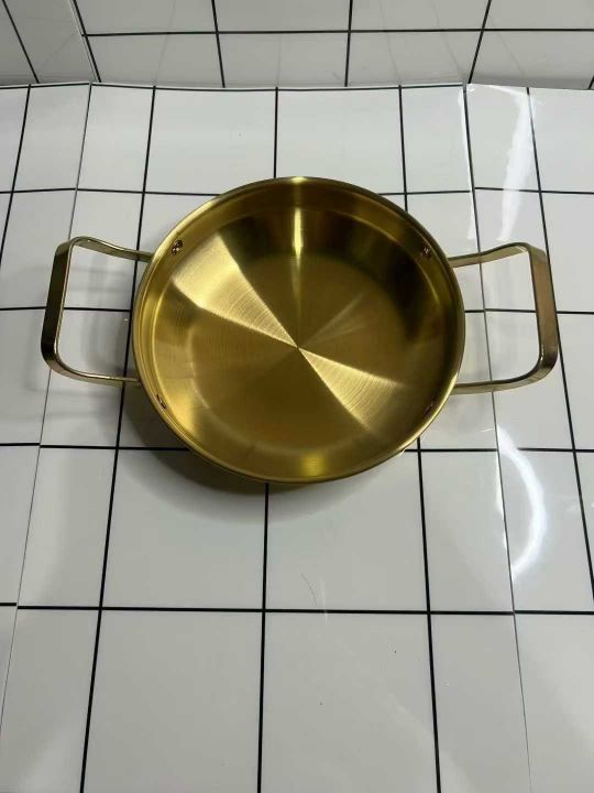 韩式不锈钢干锅海鲜锅,金色平底浅锅菜盘商用双耳锅电磁炉 ,高端货最后500...