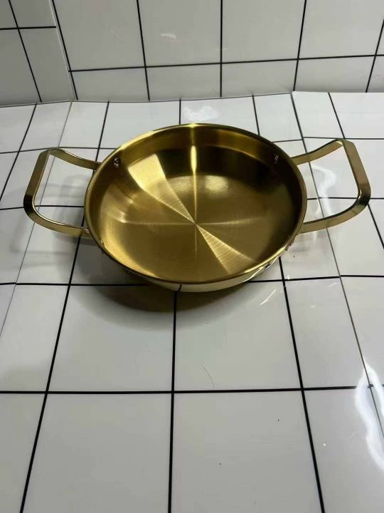 韩式不锈钢干锅海鲜锅,金色平底浅锅菜盘商用双耳锅电磁炉 ,高端货[庆祝]...