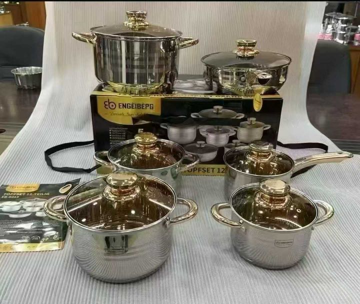 出口外贸12件套锅具,全新原包整洁漂亮!高档不锈钢材质,五层复合底工艺,...