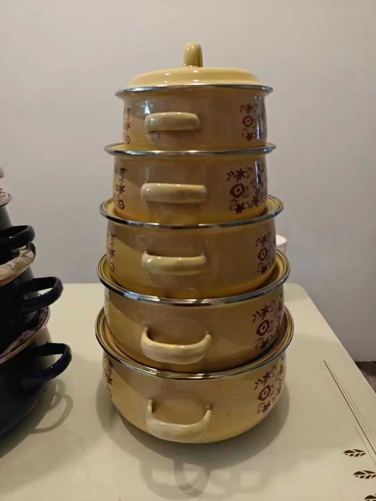 搪瓷套锅2500套,五件套,带彩盒包装,花色多,便宜处理!...
