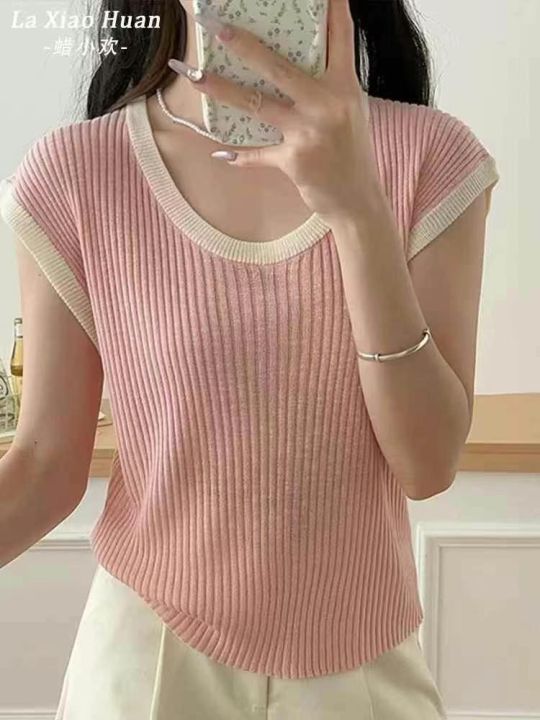 6.9元清2025年十三行春季新款多巴胺U领拼色冰丝辣妹小衫,数量700件左右,...