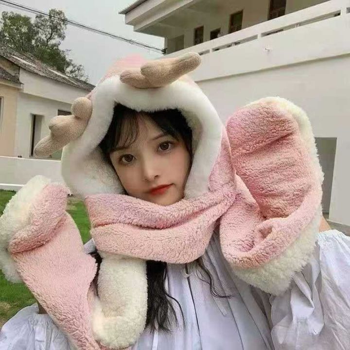 1412 件左右 秋冬爆款保暖神器,毛绒帽子围巾手套围脖三件套一体,可爱时尚...