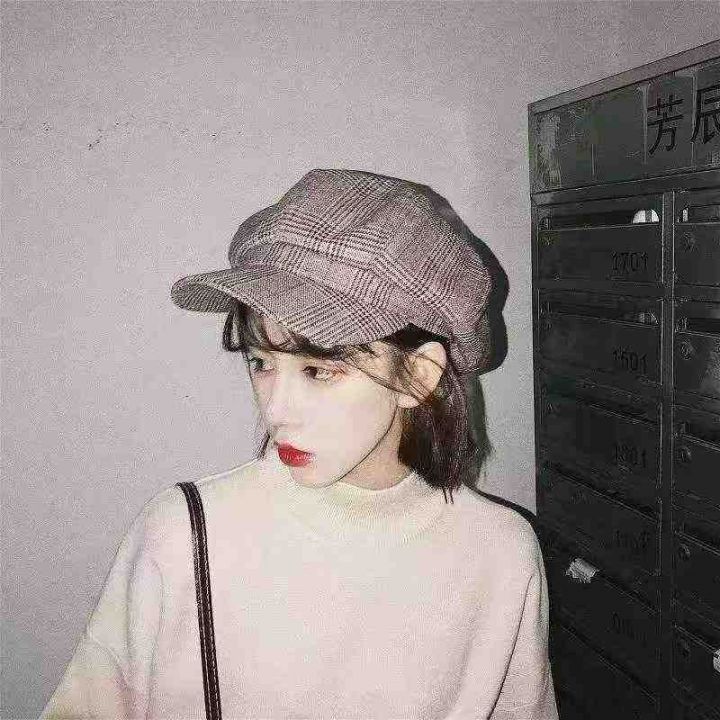 ️全清1.5 鸭舌帽韩版英伦复古格子帽,休闲画家帽秋冬百搭,全部独立包装...