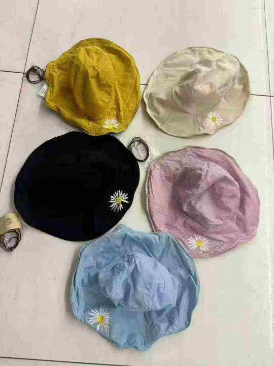 1000件双面小雏菊渔夫帽女夏天日系遮脸韩版潮百搭遮阳大沿太阳防晒帽子,棉...
