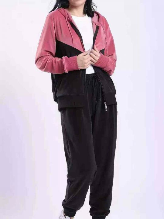 13.8清款号:6505B#欧美时尚金丝绒运动装两件套拉链连帽运动衫,数量:123...