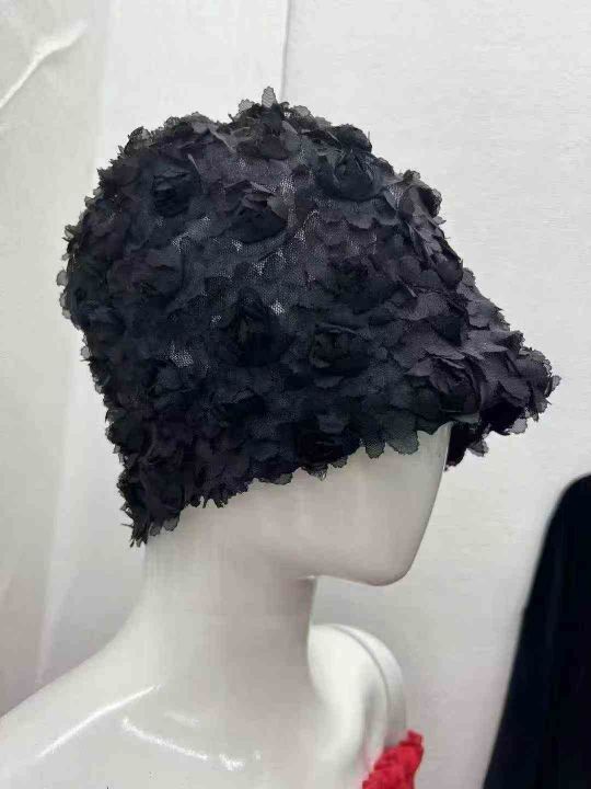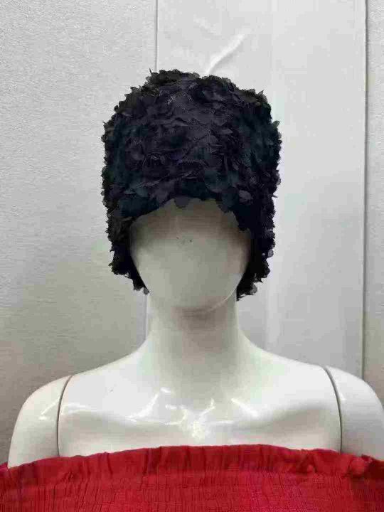 全清1.38清238左右个韩版时尚黑玫瑰花瓣蕾丝女帽!防水袋装!...