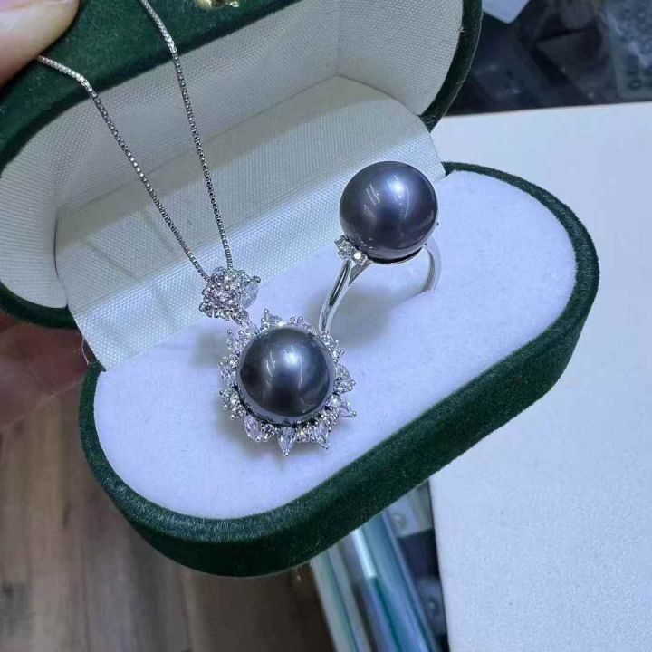 大溪地海水珠吊坠➕戒指天然原色海水珠11mm左右,丝滑细腻微瑕,这珠光足矣...