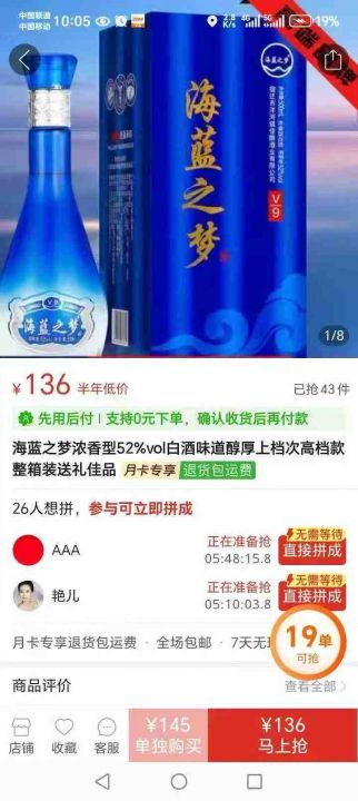 海蓝之梦,52度22年4瓶,50箱起发45 元一箱。 货号:29195...