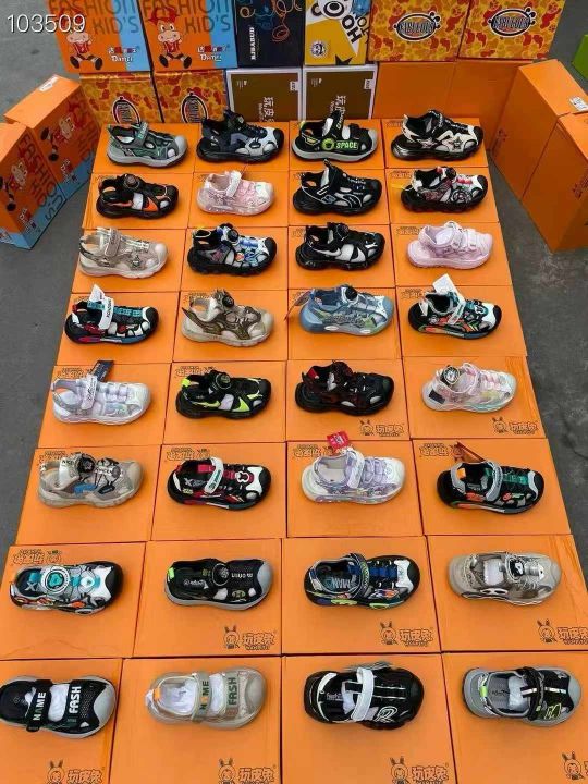 2025年火爆款。品牌顽皮兔、巴布豆 鑫牛王杂款包头凉鞋 。 部分纽扣。码...
