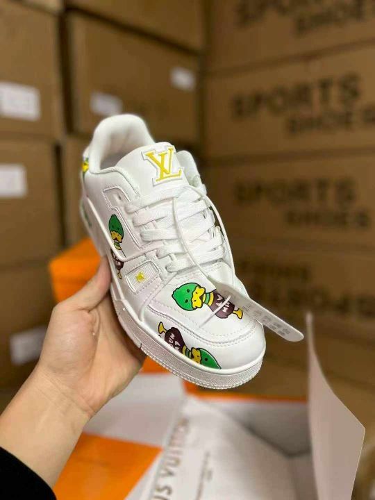 尺码40-44 摩擦吱吱响 高版本万斯LV联名款 橡胶填充大底 稳型鞋垫 防伪扣...