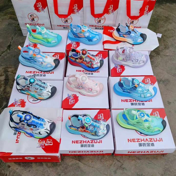 品牌:哪吒足迹㇏包头凉鞋冷粘:纽扣:吊牌+手提袋28一38码:60双批部分一手配...