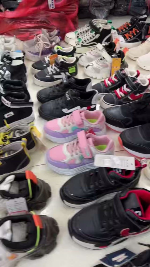 来这个鞋子有170双儿童的帆布鞋这些杂鞋,打包出600块钱...