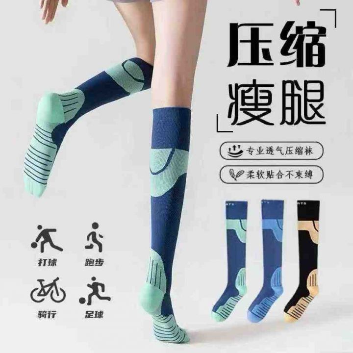 压力袜运动袜子女瘦腿小腿专业健身跳绳瑜伽跑步肌能压缩袜弹力袜中筒长袜…...