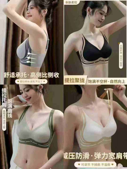 ¥4.9全清840件冰桑丝大胸显小内衣女全罩杯薄款收副乳防下垂软支撑兔耳杯无...