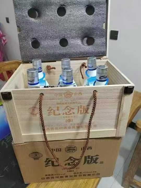 几十元一箱 杏花村酒业股份有限公司纪念版木箱 53度 清香型 一箱6瓶 带有...