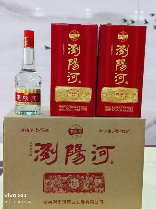 30多元一箱,浏阳河系列52度和42度,纯粮食酒,500毫升*6瓶,各有几百箱...