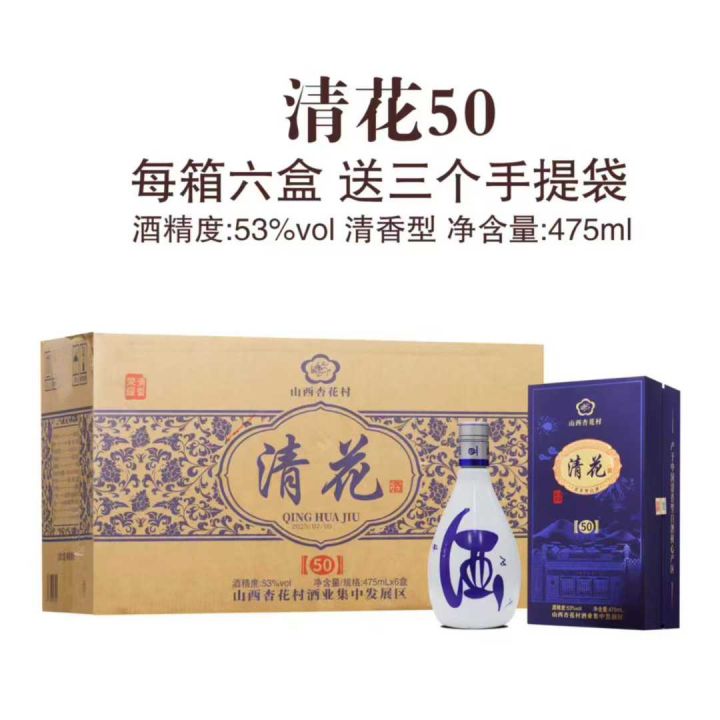 80多元一箱,杏花村清花酒超大书本盒,53度和42度,一箱6盒,带三个手提...