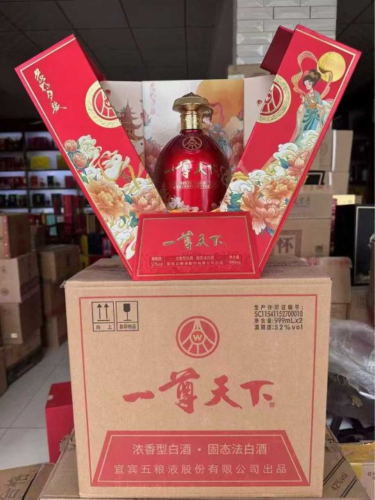 100多元一箱,五粮液一尊天下52度,一箱999毫升2瓶,优级酒水,还有个几...