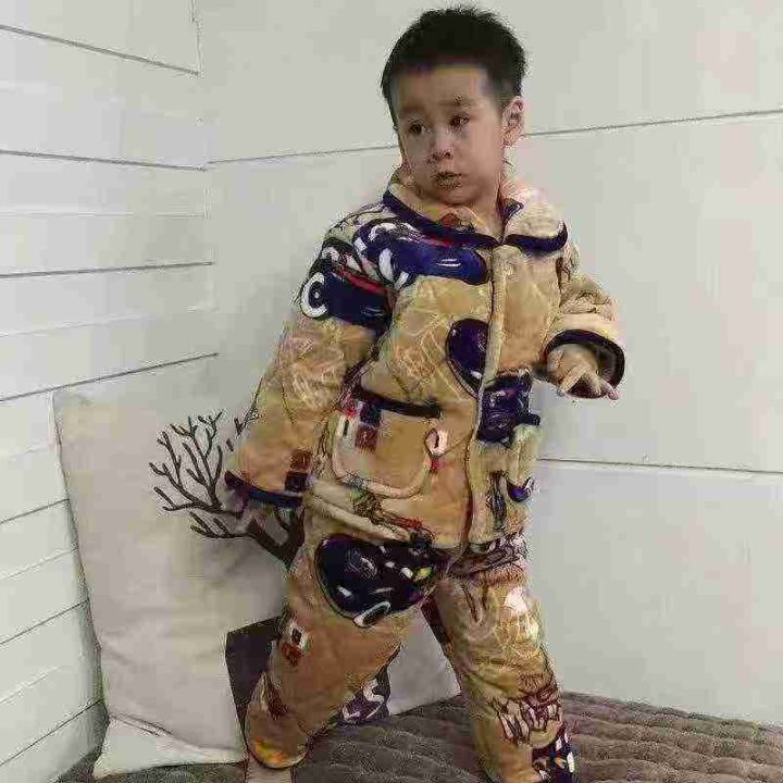 ⭐⭐900件(可爱鱼)品牌中大童珊瑚绒加厚加绒卡通三层夹棉家居服睡衣两件...