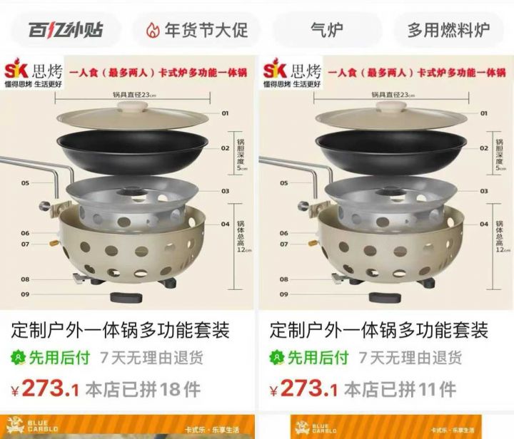 多功能户外卡式炉套锅煎+炒+焖+煮+炸+烧=多功能900台处理...