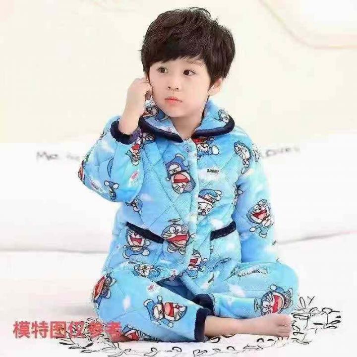 ⭐⭐900件(可爱鱼)品牌中大童珊瑚绒加厚加绒卡通三层夹棉家居服睡衣两件...