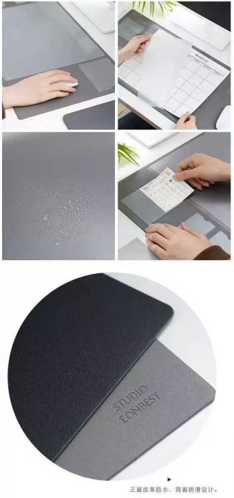 ins复古多功能商务办公家用防水大电脑桌垫皮革鼠标垫,灰色和棕色,数量415...