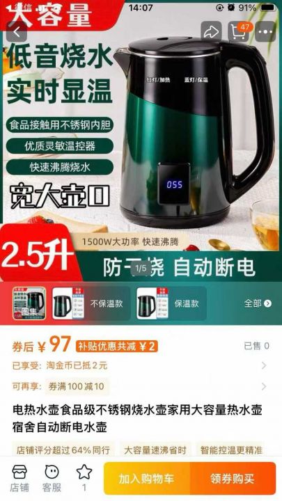 威力水壶2.5L,恒温水壶,不锈钢发热盘,双层防烫外壳...