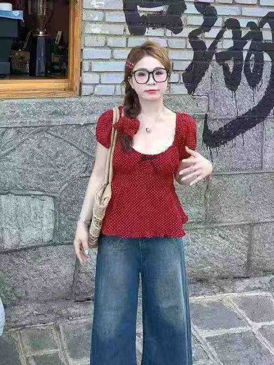 [月亮]:6.5清160件(不分货)[月亮]:波点蕾丝花边蝴蝶结温柔风辣妹上衣[...