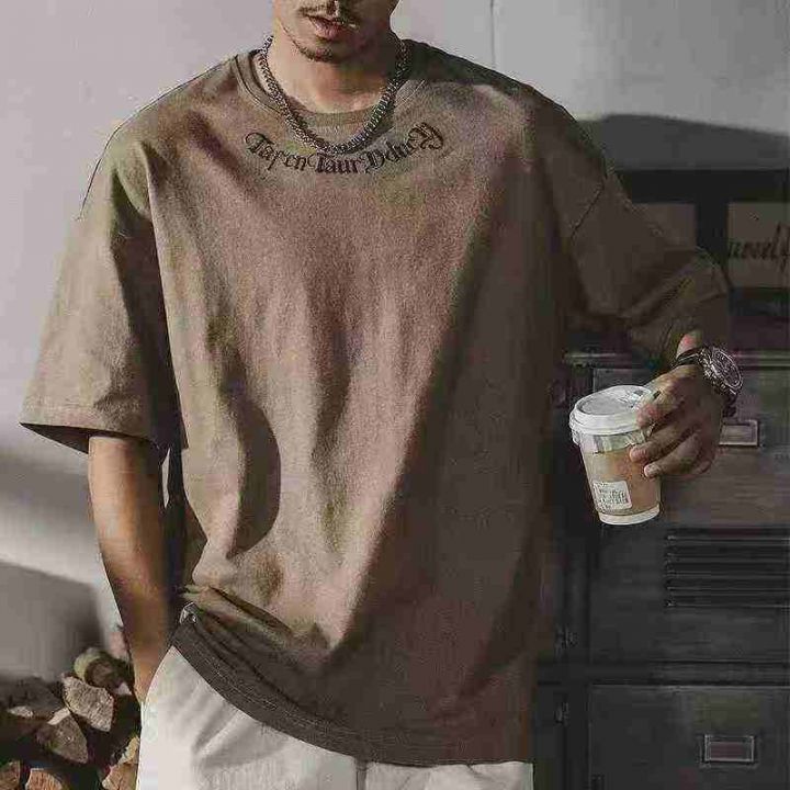 全清6.9夏季潮牌字母刺绣短袖t恤男ins胖子宽松大码圆领半袖T恤 1098 件 码...
