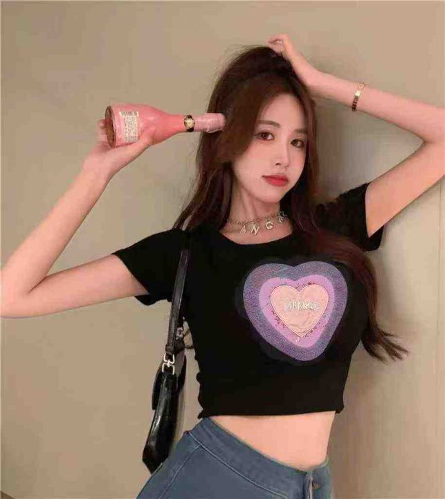4.9清电商仓回收198件甜辣纯欲刺绣爱心纯棉辣妹短袖T恤,码数S-XL。后领包...