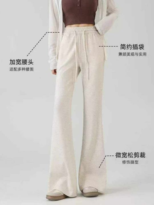 冬季新款高品质女装加绒加厚网红复古净版简约松紧腰微喇叭休闲裤,独立包装...