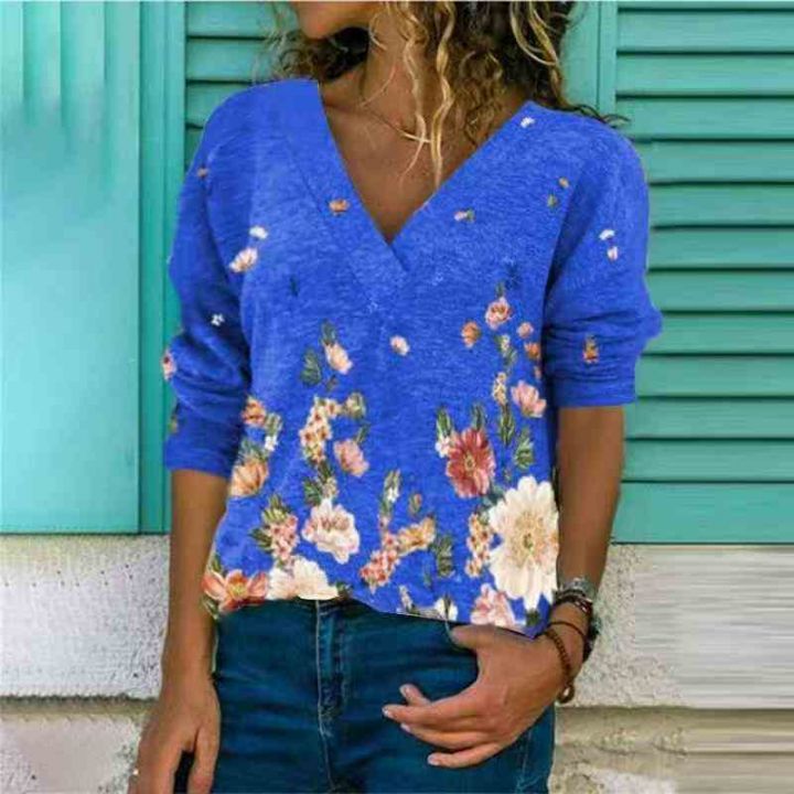 全清价3.98830件左右\'秋冬新款亚马逊wish欧美跨境女装V领套头印花长袖上衣...