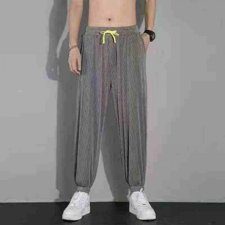 全清6.5元,6538条\'裤子夏季男休闲薄款韩版ins潮牌冰丝条纹运动大码弹力宽...