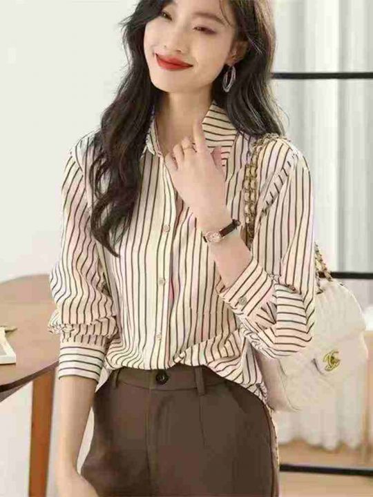 条纹衬衫女士装早春秋2026年新款爆款时尚小个子洋气上衣长袖衬衣,1到4码,...