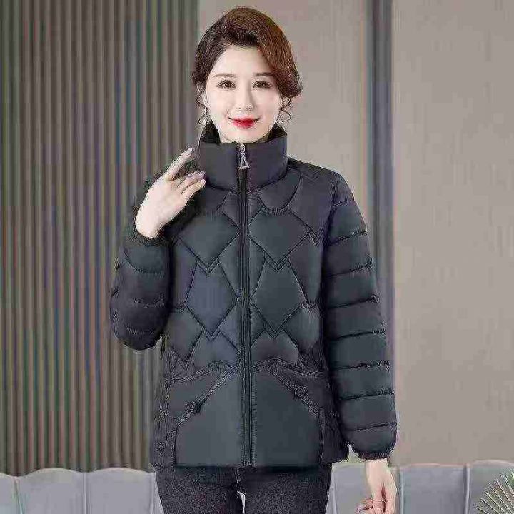 秋冬羽绒棉衣中老年妈妈装女士洋气立领时尚轻薄棉服(黑色为主),独立包装...